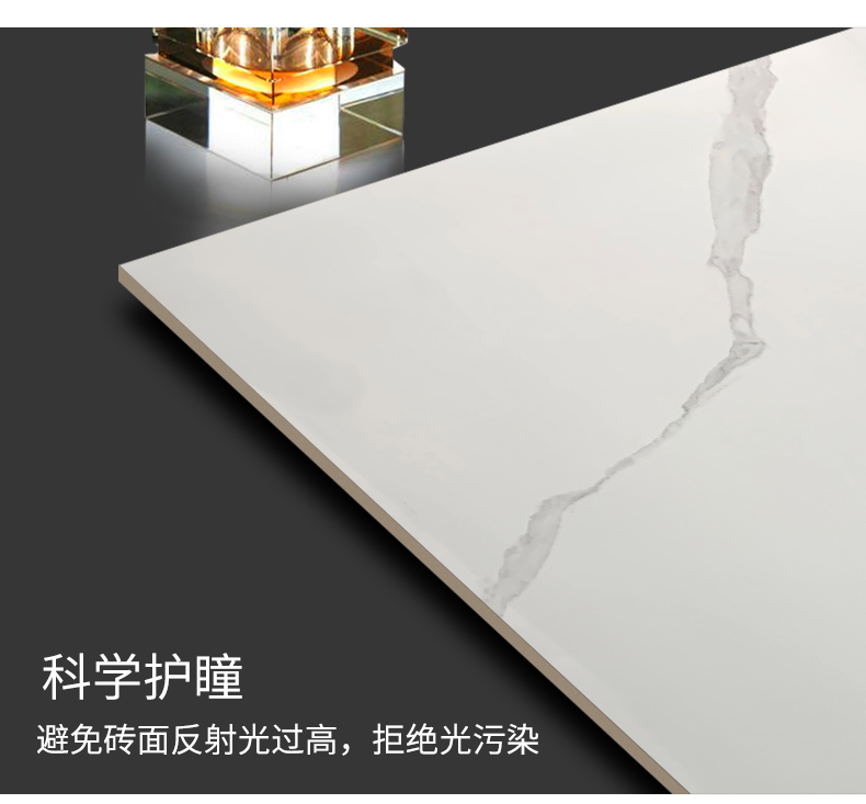 柔光瓷磚是磚面反射介于強光與弱光之間的一類瓷磚,其結合亮光類瓷磚的高調(diào)明艷裝飾和啞光類瓷磚的低調(diào)內(nèi)斂搭配效果,通過動態(tài)柔光蠟拋技術,降低產(chǎn)品反光率,從而達到人體舒適的視覺感受以及無光污染的空間裝飾效果。優(yōu)點:1.視覺舒適,無光污染 2.堅固耐磨,不易刮花.