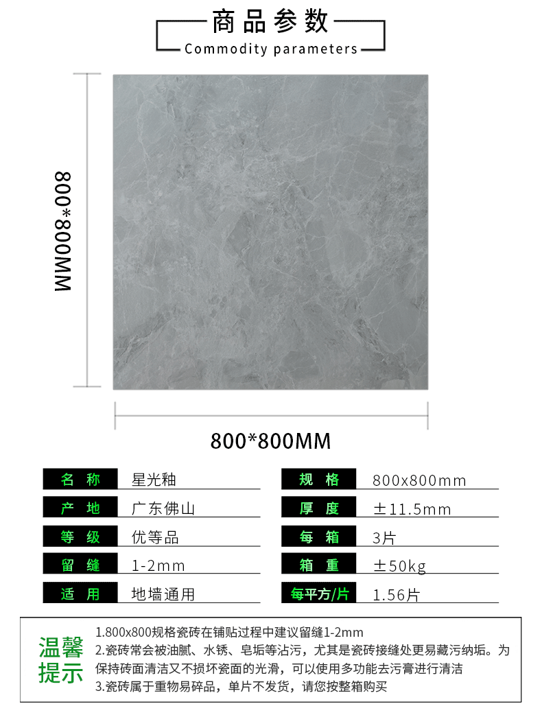 星光釉 【產(chǎn)品介紹】從天然礦石中提取的閃光干粒,加入高耐磨防滑釉料和多種特殊晶體釉,使瓷磚表面隨光線變化,散發(fā)如星空細(xì)碎微光。星光釉系列經(jīng)過30000噸超大壓機(jī)無摸壓制成型,胚體受力更均勻,具有更高平整度、超強(qiáng)抗沖擊、韌性與硬度。