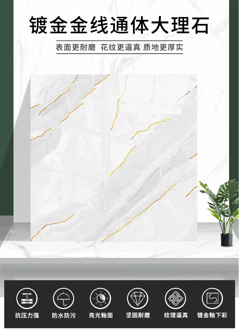 金線金粉 【產(chǎn)品介紹】航天級激光鍍金工藝,鉆石雕刻技術,高溫慢燒,釉層不吸污吸水率低,真空鍍金燒成后再進行真空電鍍工藝,平整如鏡面,精拋細磨,磚面平整光滑細膩光澤度、亮度、硬度較高。立體紋理,釉下彩工藝,三次淋釉增加磚面的立體感。