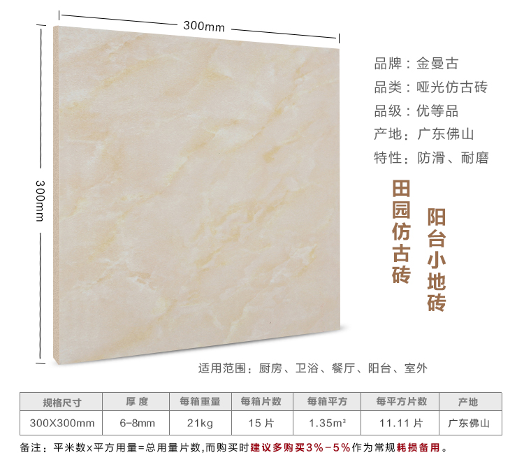金曼古仿古地磚,采用國際先進(jìn)的超大型壓機(jī)自動(dòng)成型,經(jīng)世界一流的滾筒印花和高溫煅燒而成,通過仿石、仿巖、仿木、仿布、仿金屬等多種表現(xiàn)方式,產(chǎn)品花色圖案新穎時(shí)尚,領(lǐng)先國際潮流,具有超耐磨、防滑、防污等高性能指標(biāo)。