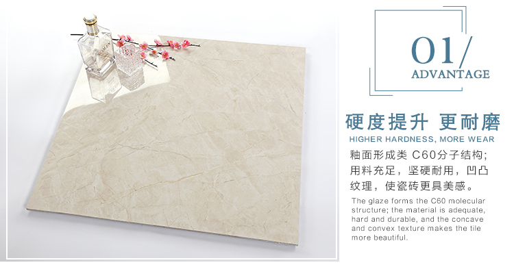 金曼古瓷磚廠家特價金剛石因高品質而得名,是一款極具天然石材效果和微晶石質感的仿石材瓷磚,它不但在價格、環保、耐用和清潔上極具優勢,在質感、規格、花色、重量等指標上,金剛石都遠遠勝于石材、拋光磚。相比其他種類的產品,它最大的特點可以用“高亮度、高耐磨、高平整、高逼真、高清晰、高環保”。