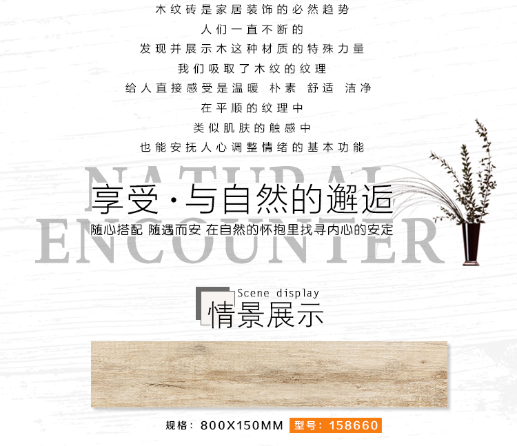 金曼古木紋磚,是一種表面呈現木紋裝飾圖案的環保建材.紋路逼真、自然樸實、沒有木地板褪色、不耐磨等缺點;曼古陶瓷木紋磚系列線條明快,圖案清晰為特色。本身具有阻燃,不腐蝕的特點,綠色、環保型建材;產品使用壽命長,耐磨,無需像木制產品那樣周期性地打蠟保養等.