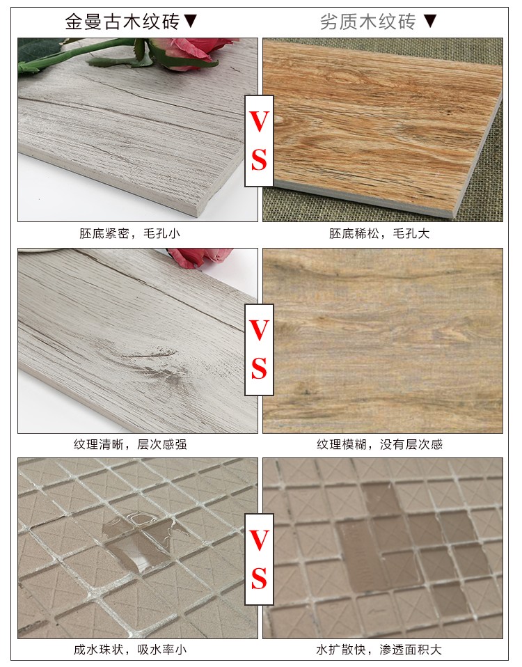 金曼古木紋磚,是一種表面呈現(xiàn)木紋裝飾圖案的環(huán)保建材.紋路逼真、自然樸實、沒有木地板褪色、不耐磨等缺點;曼古陶瓷木紋磚系列線條明快,圖案清晰為特色。本身具有阻燃,不腐蝕的特點,綠色、環(huán)保型建材;產(chǎn)品使用壽命長,耐磨,無需像木制產(chǎn)品那樣周期性地打蠟保養(yǎng)等.