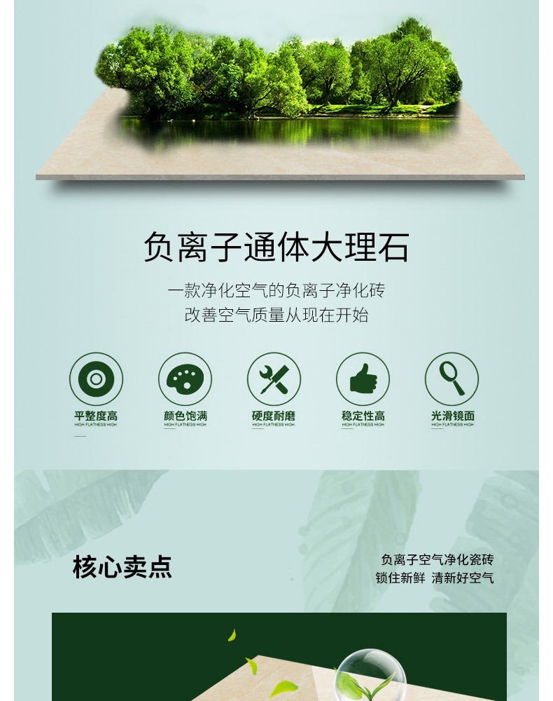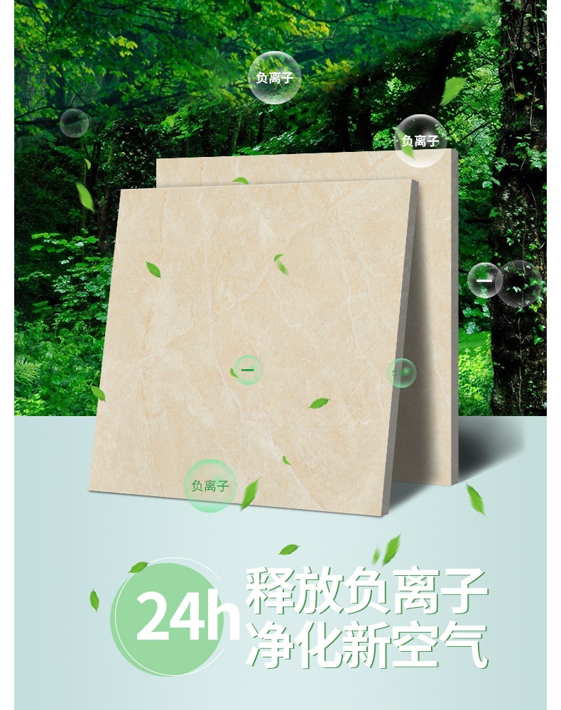 金曼古負離子瓷磚,能持續產生負離子,提高居室內空氣負離子濃度,改善室內空氣質量,提升人體健康水平。負離子被稱為空氣維生素,負離子瓷磚創造安全健康的空間環境。工程用磚全拋釉地磚、通體大理石瓷磚、金剛石地磚等支持加工定做家裝瓷磚批發。
