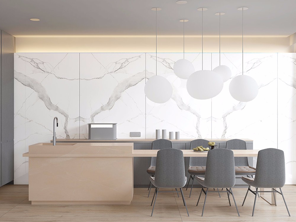 大規格瓷磚(5-JH241211)-工程瓷磚 金曼古大規格瓷磚引進世界最先進的超大型壓機自動壓制而成,具有超大規格,超高硬度,超高致密度,超長時間煅燒,超低吸水率,超高光澤度。其磚面紋理流暢自然,效果逼真,適用于大型工程外墻干掛和酒店、商場、各辦公樓大堂等地面裝修
