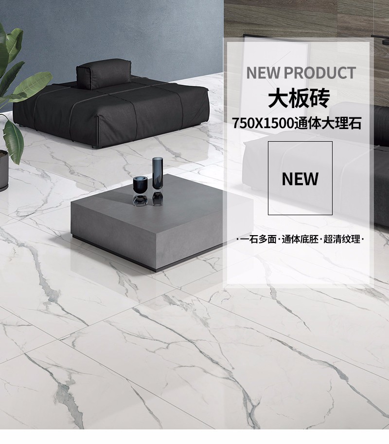 大規格瓷磚(DB751507A)-工程瓷磚 金曼古大規格瓷磚引進世界最先進的超大型壓機自動壓制而成,具有超大規格,超高硬度,超高致密度,超長時間煅燒,超低吸水率,超高光澤度。其磚面紋理流暢自然,效果逼真,適用于大型工程外墻干掛和酒店、商場、各辦公樓大堂等地面裝修