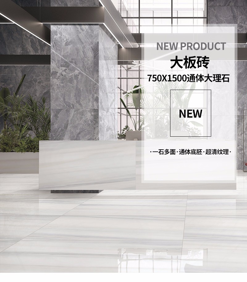 大規格瓷磚(DB751513A)-工程瓷磚 金曼古大規格瓷磚引進世界最先進的超大型壓機自動壓制而成,具有超大規格,超高硬度,超高致密度,超長時間煅燒,超低吸水率,超高光澤度。其磚面紋理流暢自然,效果逼真,適用于大型工程外墻干掛和酒店、商場、各辦公樓大堂等地面裝修