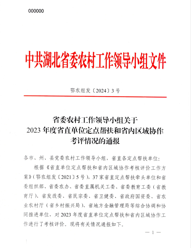 同時,省農業(yè)農村廳印發(fā)的省委組織部、省委農辦、省農業(yè)農村廳《關于表揚2023年度省派駐村工作先進集體和先進個人的通報》(鄂農發(fā)[2024]21號),湖北清能投資發(fā)展集團有限公司榮獲“2023年度工作突出派出單位”